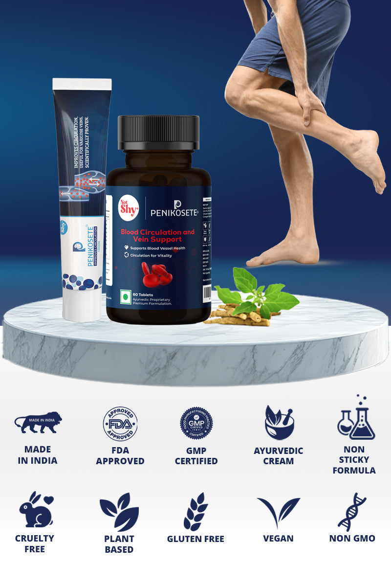 PENIKOSETE®️ Ayurvedic Tablets are crafted to address the root causes of varicose veins. The powerful blend of Ashwagandha, Punarnava, Triphala, and other Ayurvedic herbs helps to strengthen vein walls, improve blood circulation, and reduce venous congestion. Regular use can alleviate leg heaviness, reduce swelling, and minimize the appearance of varicose and spider veins, providing comprehensive vascular support from within.